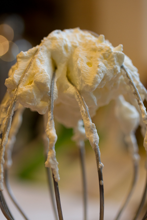 Put the cream in a stainless steel bowl and put the bowl in the freezer for 5 minutes to get everything really cold. Whip the cream until it holds stiff peaks.