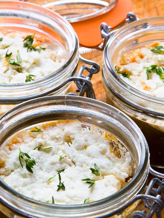I made a couple of extra jars to give away when we made these at home. We ate a jar and a half for lunch after testing the recipe. That left a half-jar for nibbling and a couple of untouched jars for family consumption sometime in the next week. I love having things like this in the fridge–it’s lunch or dinner or appetizers for a big dinner ready to go.