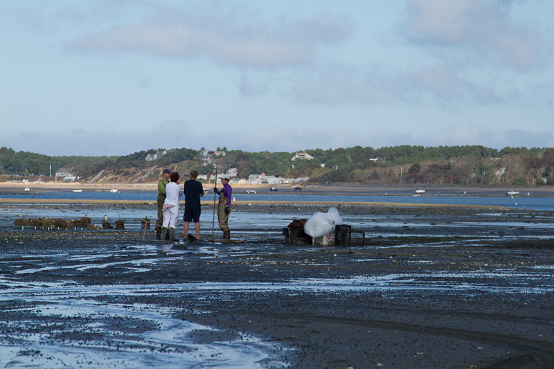 These qualities have not escaped the notice of connoisseurs. Were it not for their texture and flavor Wellfleet clams couldn’t compete in the larger world of bivalve aquaculture. The competition is too big, the margins too small, particularly for New England clam farmers, who tend to be Lilliputian when compared with their warm-water cohorts. Florida littlenecks grow from seedling to legal size in half the time as their Massachusetts peers. The entire town of Wellfleet, on Cape Cod, has about 200 acres of coastal flats dedicated to aquaculture, parceled out into grants ranging from 5 acres (generous first grants, established 25 years ago, before anyone knew the business would catch on) to plots as small as an acre. The acreage of a single clam farm in Virginia may exceed that of all the Wellfleet grants combined. With that kind of competition, Woodbury’s has to offer something that stands out, a product that clients will purchase at a premium.