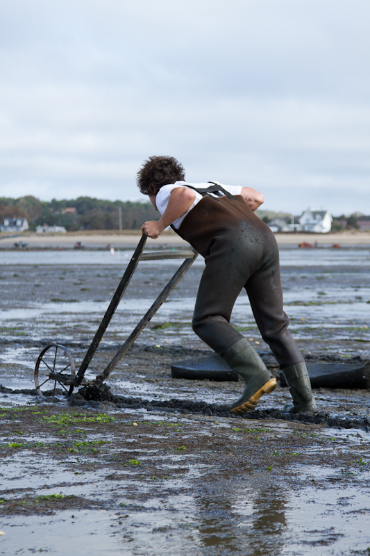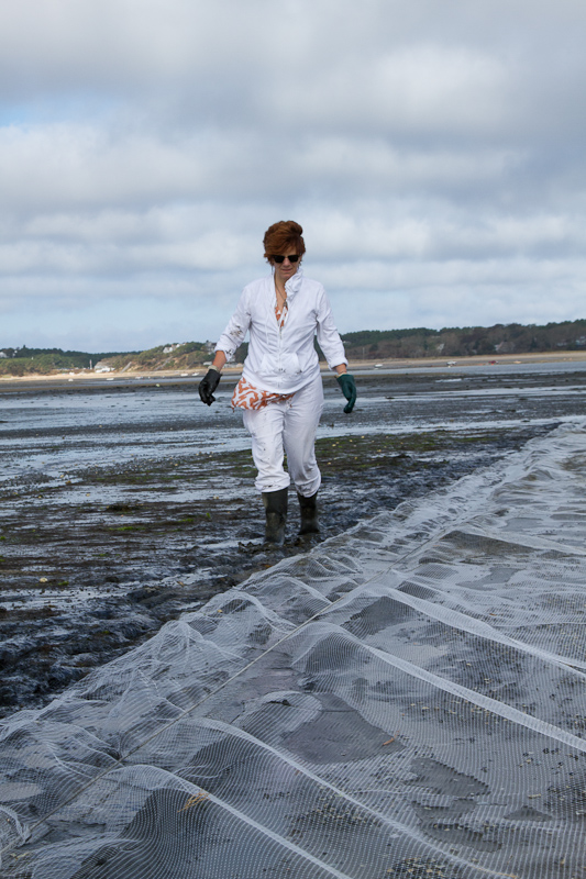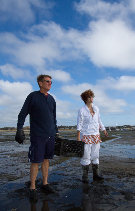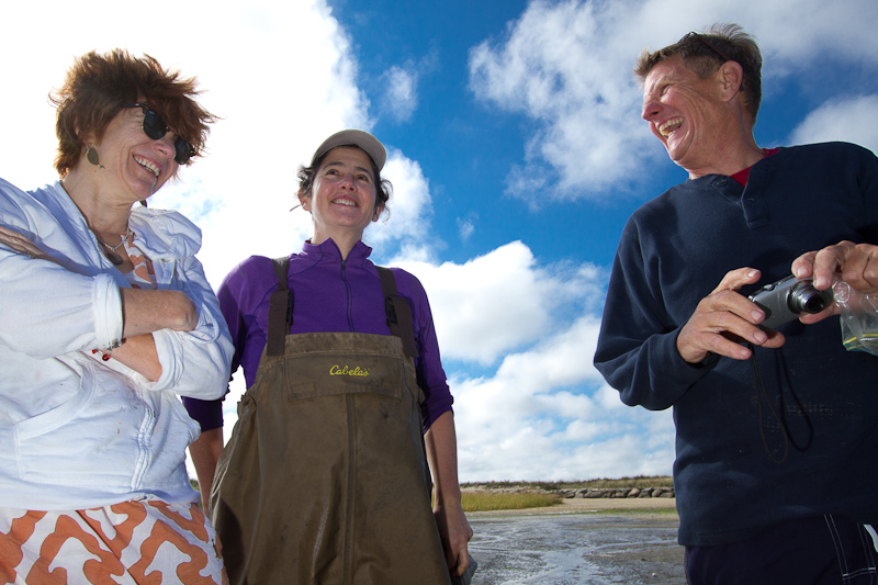 On a post about Labor Day weekend it seems appropriate to step back and give you a glimpse of the people behind the food. Herewith, a taste of our visit to the Woodbury Shellfish aquaculture grant in Wellfleet. Barbara and Patrick Woodbury are the sort of people you almost never hear about unless you’re in the food business. They are local and organic down to the soles of their waders. On two and half acres of Cape Cod tidal flats they produce hundreds of thousands of the most prized littleneck clams in New England.