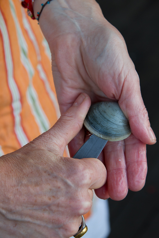 So, be sure your clams have rested for several hours after harvesting so they relax a bit. If they’ve rested a day or so, it will be even easier.
