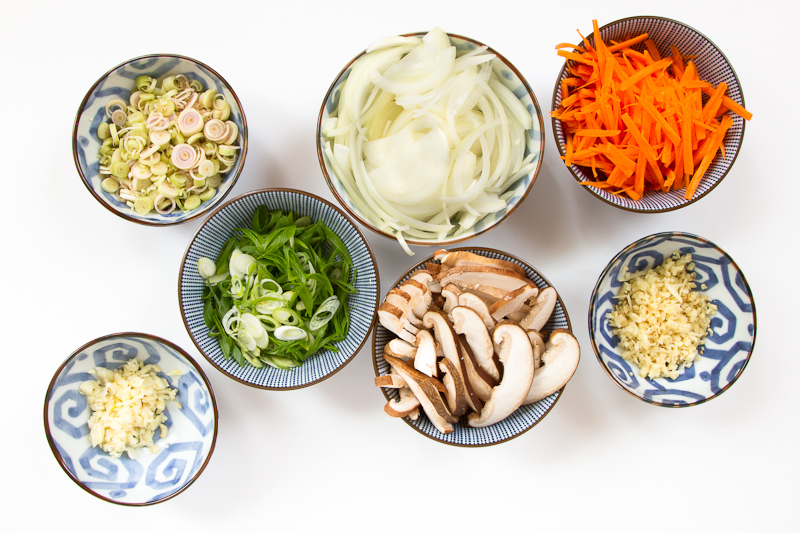 7. Make a mound of noodles in the center of 4 warm bowls. Ladle the soup over the noodles.