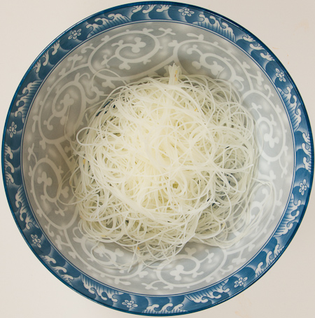 • 6 ounces rice noodles, soaked in warm water 10 minutes.