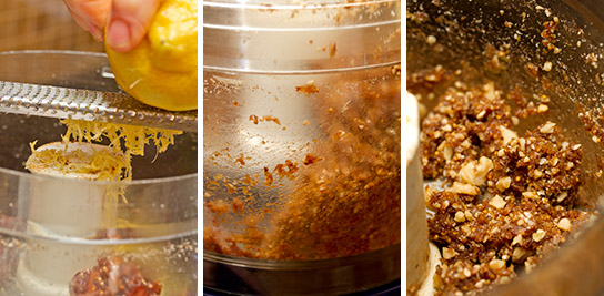 The basic technique is to puree dried figs with some flavorings and then add some texture with nuts and seeds.