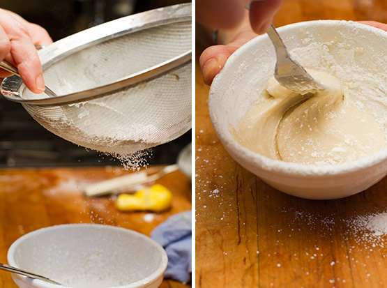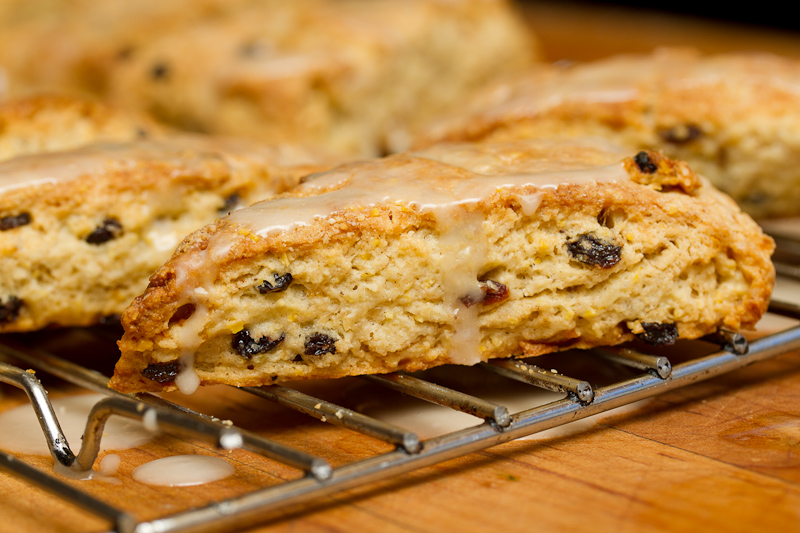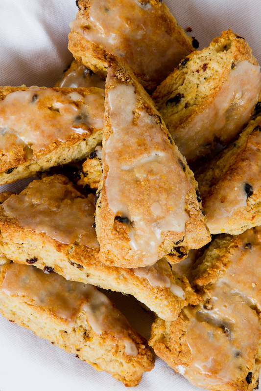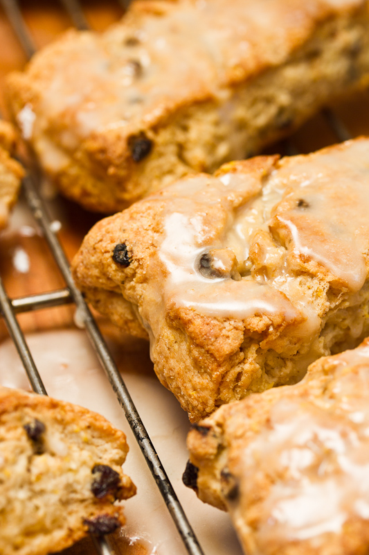 9. When the scones are cool, sift the confectioner’s sugar over the lemon juice and beat to combine well.  Spread the glaze over the scones.  Give the glaze a few minutes to dry.  If not serving immediately store them in a brown paper bag–for a day, at most.