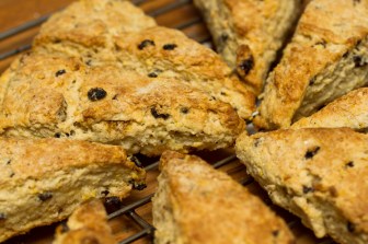 I wanted to make scones for Christmas morning, crumbly buttery ones with some substance, not the poofy airy versions.  A different wrinkle on the usual flavors would also be nice.  After paging through a lot of books I ultimately zeroed in on Joanne Chang’s currant scones from FLOUR for a general approach.  Nancy Silverton’s jam thumbprint scone recipe, included in the anthology BAKING FROM THE HEART, also appealed to me for its use of brown butter.