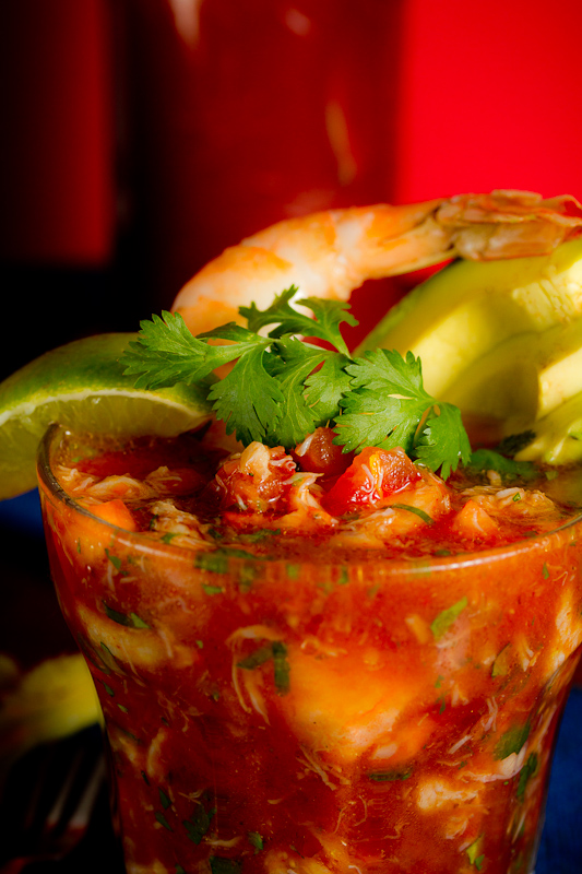 I was 16, and thrilled. Sweet and sour tomato juice, jam-packed with big chunks of shrimp and crab, and seasoned with freshly squeezed lime juice, chilies and cilantro. I never forgot the taste. Here it is–Happy New Year!