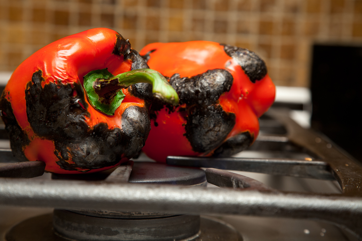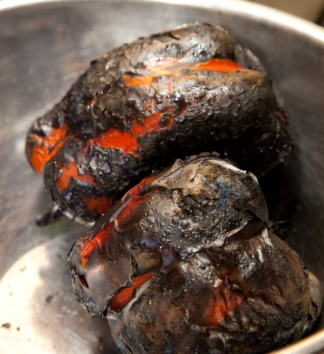 When peeling roasted red peppers, stand by the sink. Rinse your hands, not the peppers as you peel. If there are a few charred bits that cling to the peppers and make it into the Romesco sauce, that’s okay. They add a bit of smoke to the flavor.