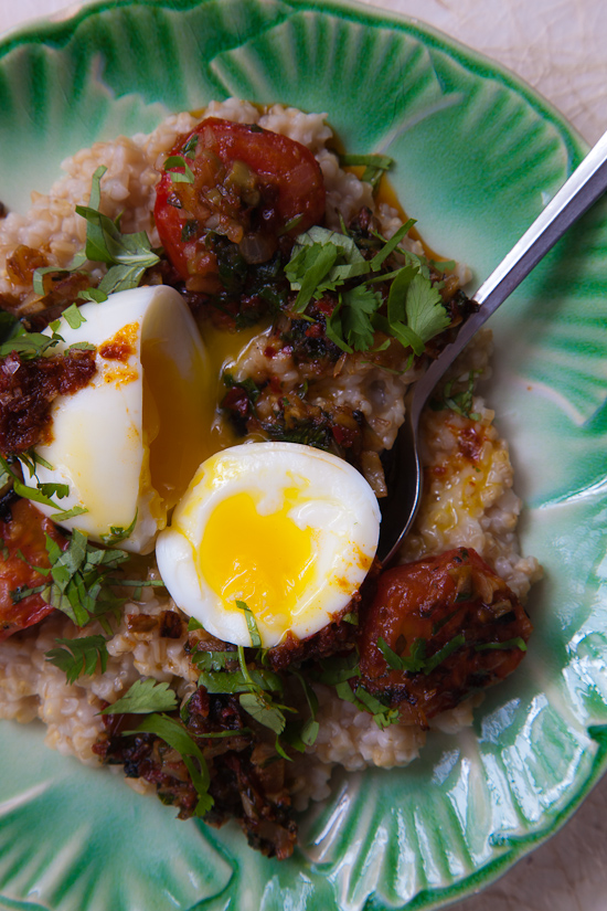 Steel-Cut Oats with Eggs, Preserved Lemon and Olives