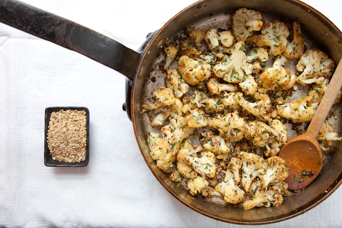 We’re going to switch things up this week for Pan-Roasted Cauliflower with Dukkah. Normally you read a title like that and you think, Okay, this is about cauliflower, and then it’s about dukkah, whatever the hell that is. It would then follow that we’d spend a lot of time nattering on about cauliflower and give you a little dukkah sub-recipe (we’re not sophisticated enough to have a site that features sidebars… yet).