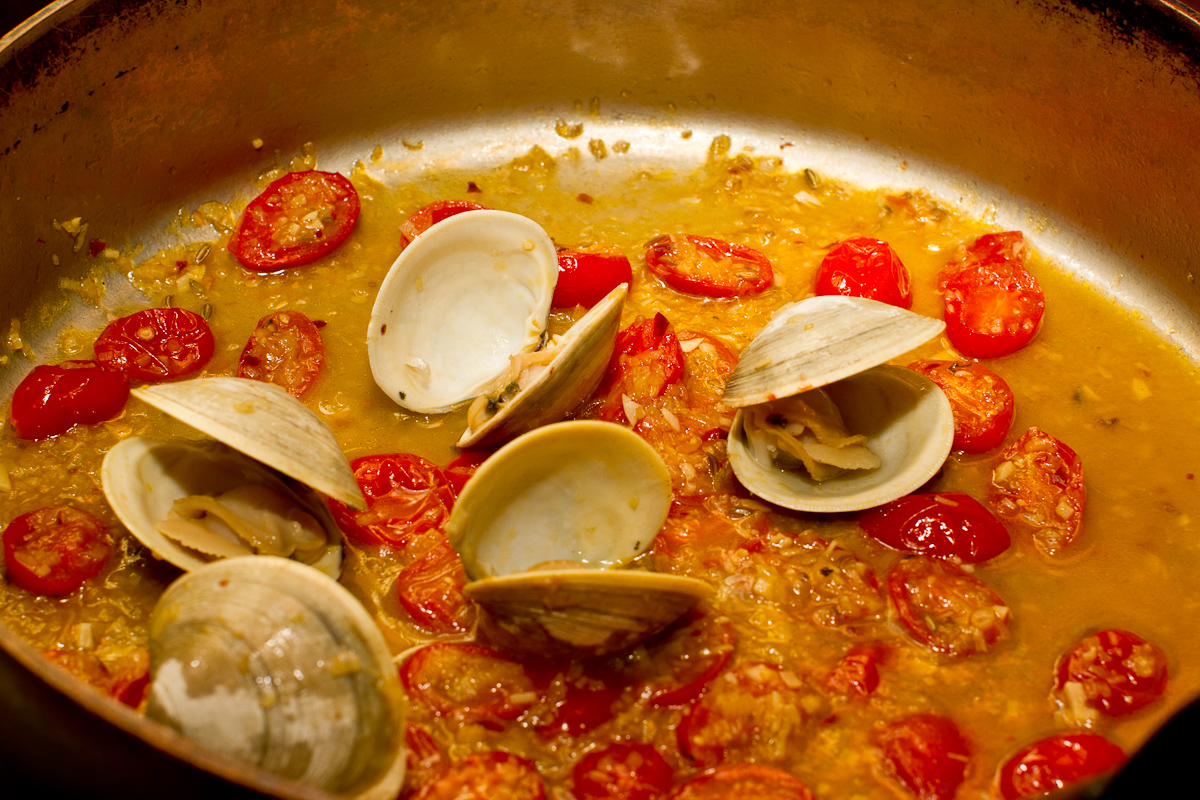 11. Ha! That would have been great–taking the family sardine out for a swim! The breadcrumbs are a great addition to pasta with clams–introduced to me by my wife. This dish is really in its glory when fresh local tomatoes come into season and you can eat it outdoors, with a cold bottle of Vermintino. We just happened to have the clams, some pretty decent cherry tomatoes and, well… we couldn’t help ourselves. I’m sure you’ll love it. Ken