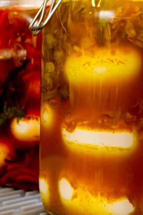 • Serendipity. The reverse happened to me. We made two batches of three different kinds of pickled eggs, then I ran across your post about tea eggs. It’s the season, what’s available, what’s in the air. Last summer I did a post about roasted peppers, feta cheese and herbs in a jar–Today’s Boston Globe has an article mentioning the new fashion of serving things in jars. Go figure. Food is a virus–and we just keep giving it to each other. Ken