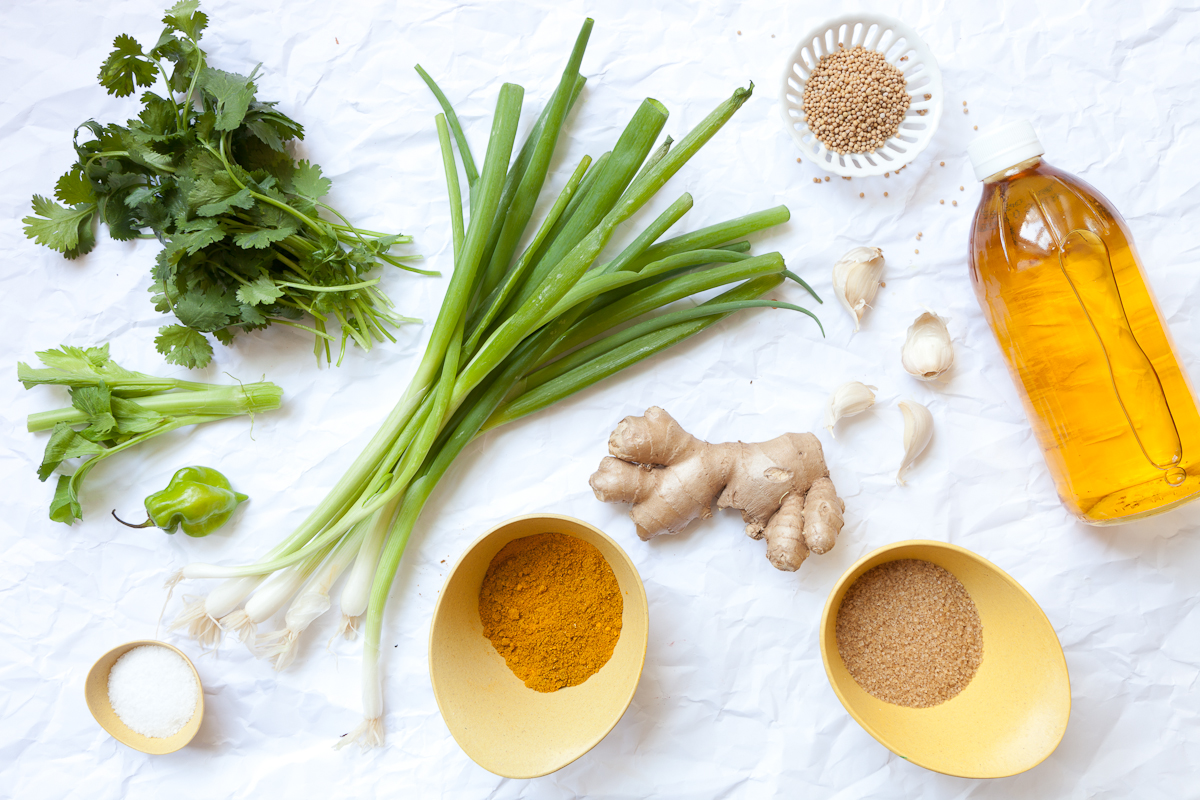 • 1 celery heart top with the leaves, thinly sliced with the leaves