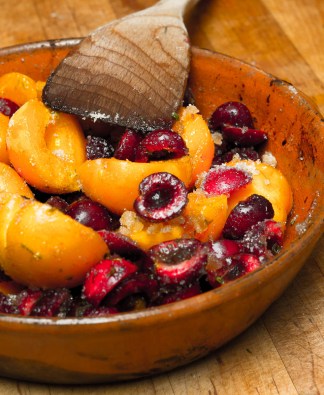 • Wow, Molly, sage. Interesting choice. That’s not something that would have immediately leapt to mind, although I love sage in savory food. Now you’ve got me intrigued. In a weird reversal, we originally thought to do this with blackberries, but we couldn’t find any close by, so we went with what we could get–apricots and cherries. Thanks for letting me know about the sage–I’ll pass that idea on to Jody. Ken