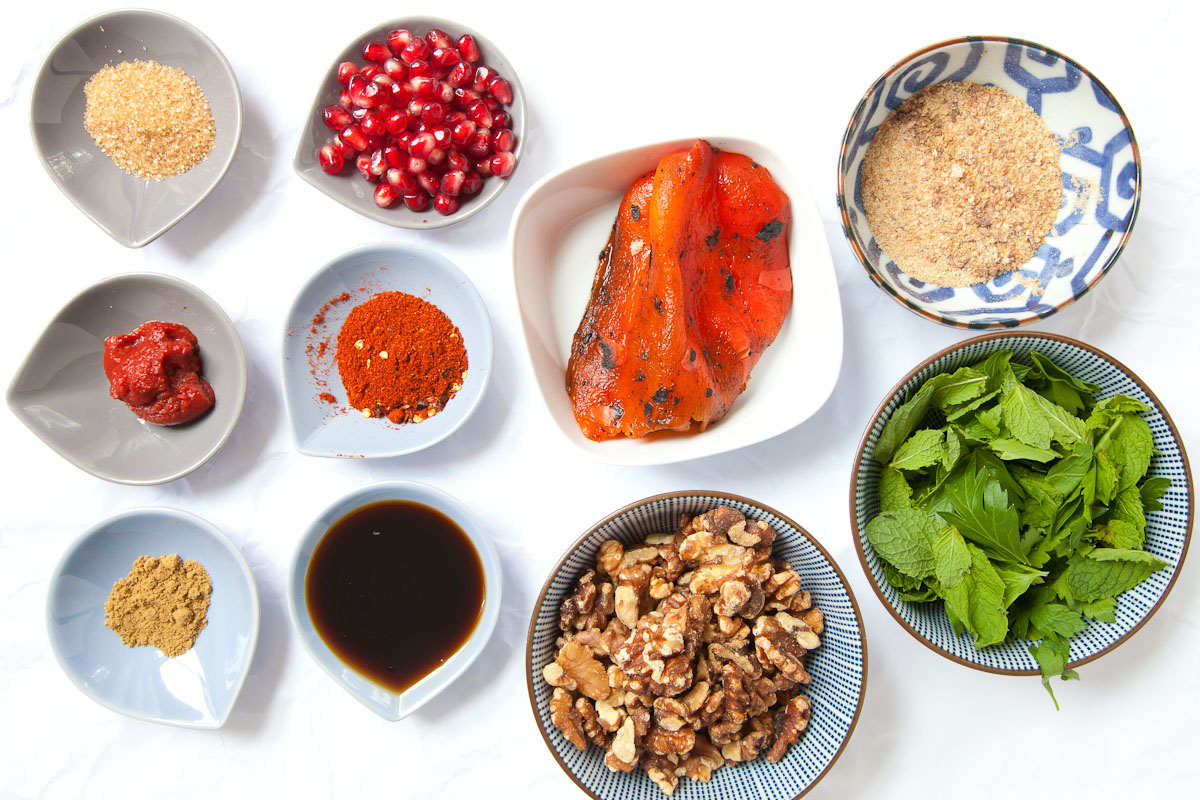 I first encountered it in a Middle Eastern grocery store that sold ready-made items for a DIY mezze platter, the western Mediterranean’s answer to antipasti.  I’d gone there to buy pomegranate molasses and Itch, an Armenian bulgur salad, and I made a habit of purchasing at least one thing I didn’t recognize.  That visit I chose a dark red goop called muhammara.  “Eat it with pita bread,” the store-owner advised.