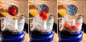 3. Put half the muhammara in a separate bowl.  Cover the rest and reserve to serve with the chicken.