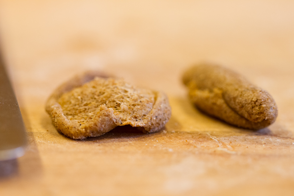 Jody and I have talked in the past about la cucina povera, or the “cooking of the poor,” sometimes referred to as peasant food. In Puglia, peasants were allowed to glean the harvested wheat fields of aristocratic land-owners; that is, they were permitted to scavenge for fallen grains. But here’s the catch: they could only glean after the post-harvest stubble had been burned to prep the field for the next season. A fair share of whatever leftover grains survived the fire were charred. Not that you’re bothered by that–you’re hungry, remember. And milling charred grains into flour, what the Puglians call farina arsa, (“burnt wheat” or “burnt flour”) beats starving by a country mile. The kicker is, pasta made with a bit of burnt flour tastes great. Although the color of burnt wheat cavatelli resembles that of whole wheat pasta, they taste quite different. Cavatelli made with farina arsa have a chewy texture and a deep, toasty flavor that stands up to strong ingredients (we’re already thinking about making burnt wheat cavatelli again with a sauce using duck meat).