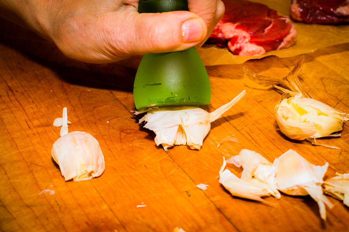 Truth be told, we don’t eat much red meat.  However, Lamb Steaks with Herbs and Caramelized Garlic make a great indulgence, especially with the Puglian wrinkle of using olive oil scented with rosemary, sage and thyme instead of a butter sauce.