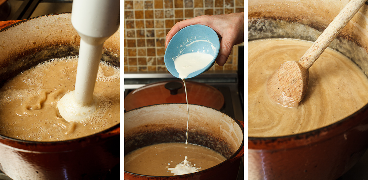 3. Remove from the heat and use an immersion blender to puree to a smooth consistency.