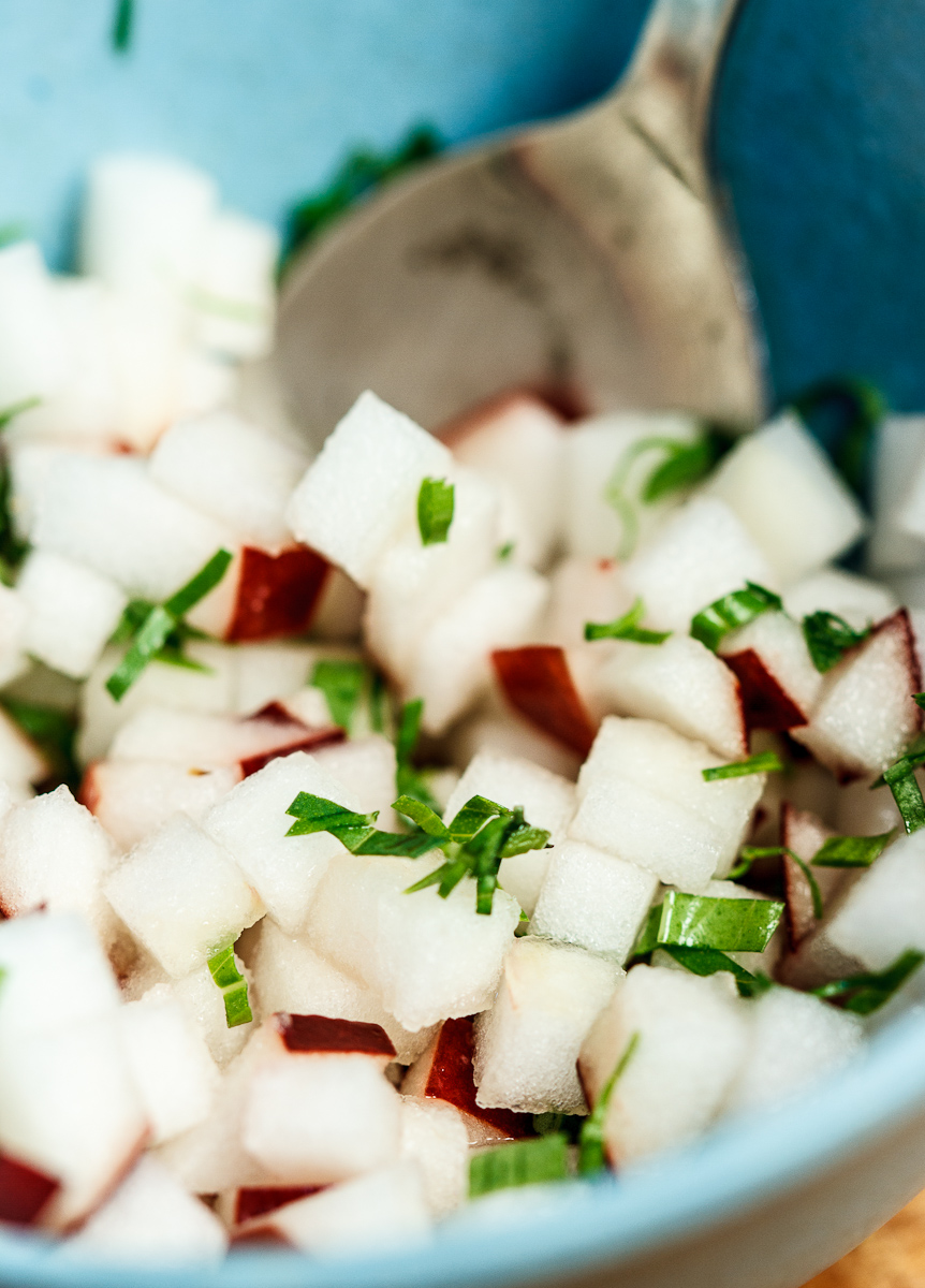 6. Toss the apples with the remaining lemon juice and the tarragon.