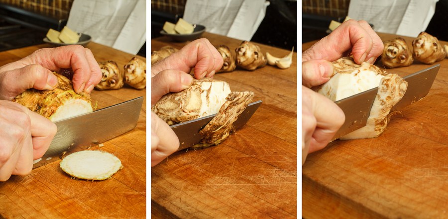 5. My grandparents, German Jews, hid in Provence during World War 2. To this day, my Uncle Marcel refuses to eat sweet potatoes, rutabagas, and turnips because he feels he had a life time’s allotment by the time he turned 11. He’s never mentioned the Jerusalem artichoke nor the celeriac, although he tends to stay away from root vegetables as a general rule because of his childhood. I happen to love all root vegetables, although I’ve actually never cooked with Jerusalem artichokes. (We eat tons of regular artichokes because of all the time in Provence, though. Can’t get enough of those.)