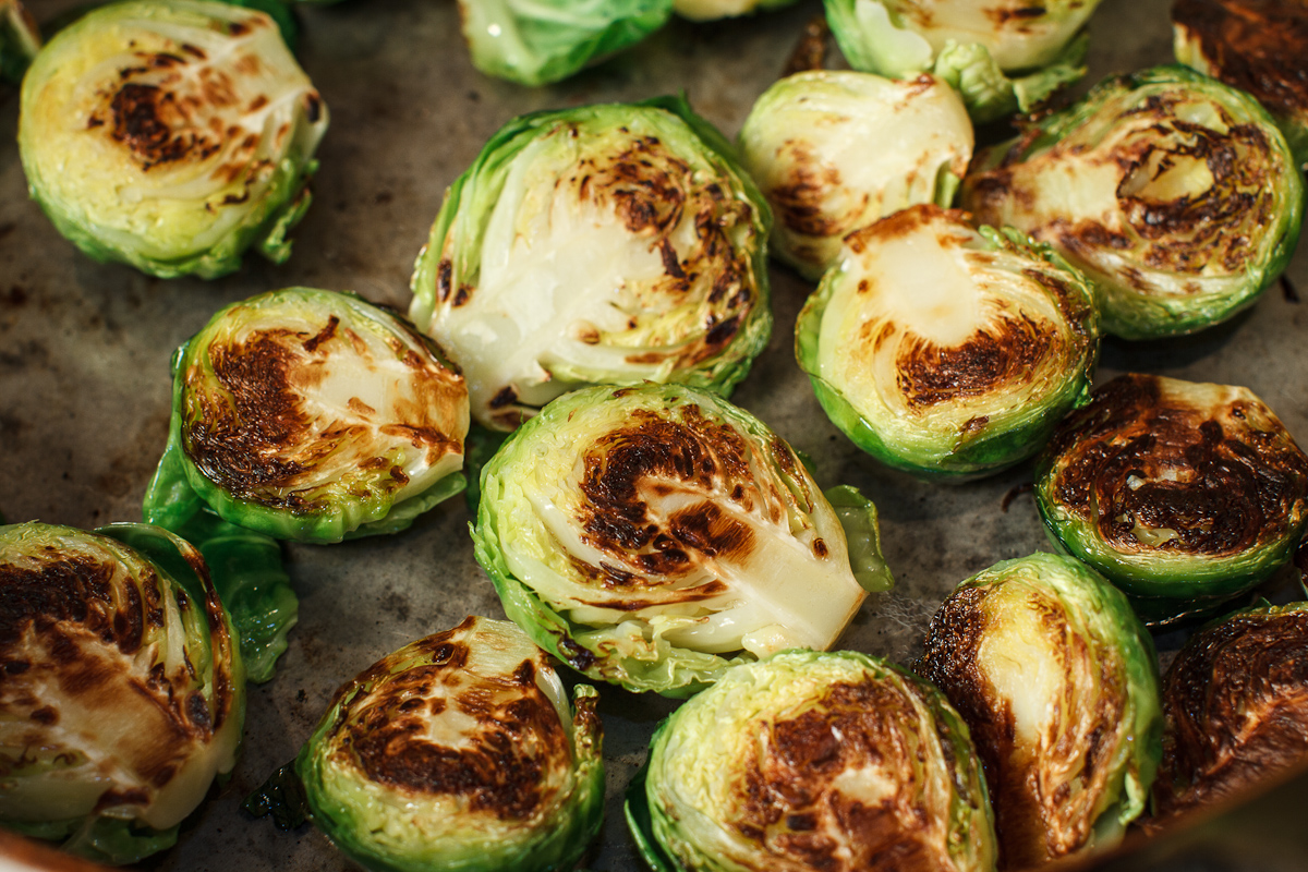 Here at Bistro 4 (as we jokingly call our house) sprouts are roasted with a dab of olive oil and whatever herbs happen to be lurking in the fridge.