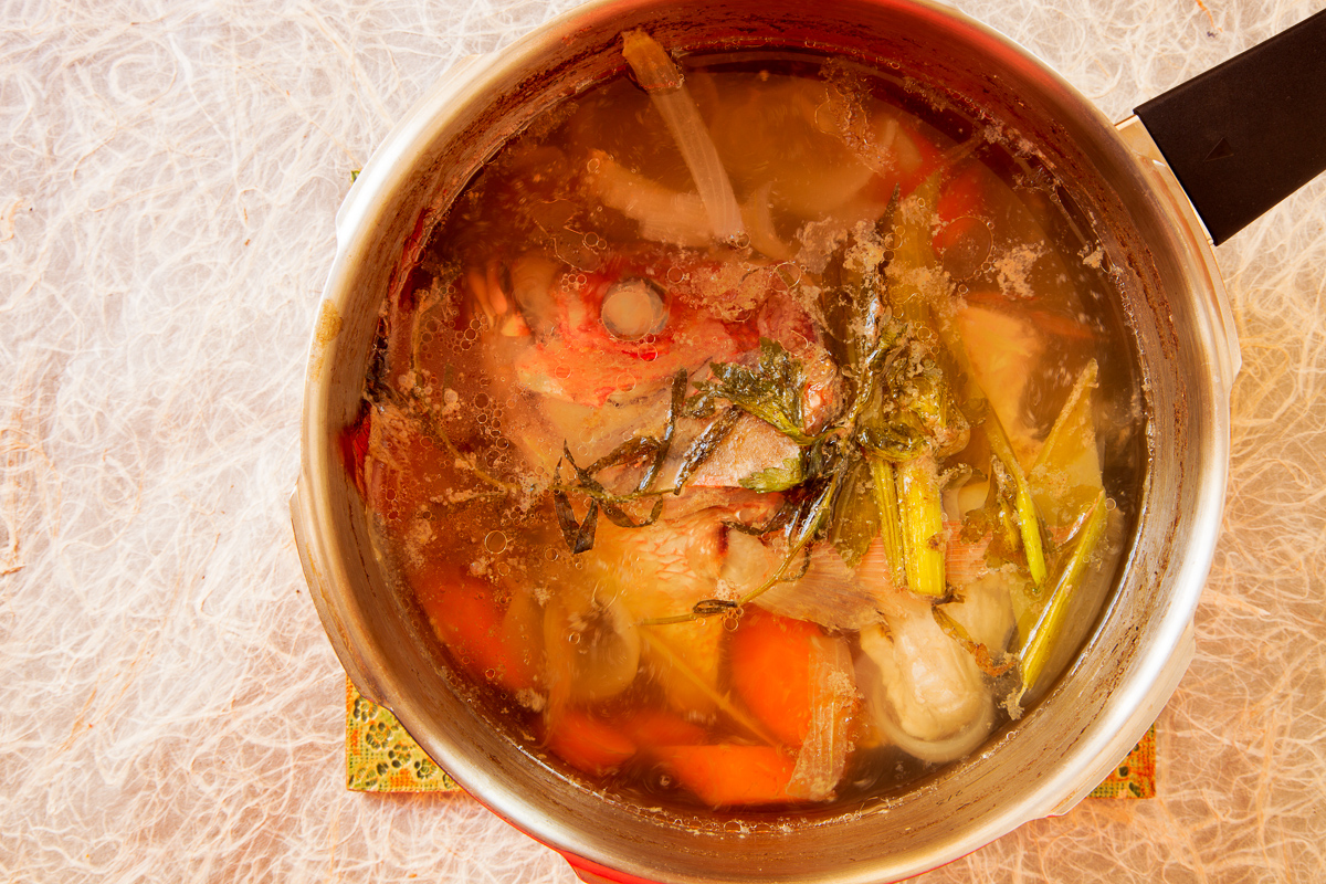 Israeli Couscous with Red Snapper and Preserved Lemon-6 May 10, 2013 by Jody and Ken Of course, Jody had to make her own fish stock.