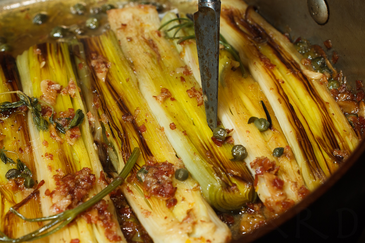 Braised Leeks with Meyer Lemon, Pancetta and Parmigiano Reggiano -26 December 12, 2013 by Jody and Ken