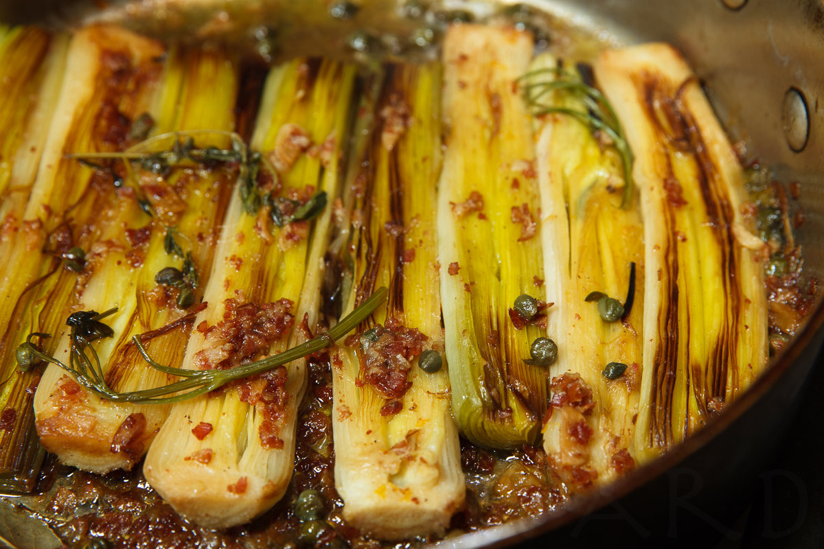 Braised Leeks with Meyer Lemon, Pancetta and Parmigiano Reggiano -47 December 12, 2013 by Jody and Ken