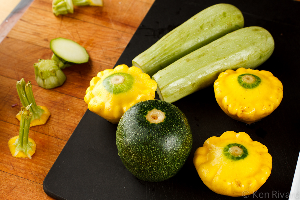 • 1¼ pounds small tender squash  (e.g. summer, zucchini and patty pans)