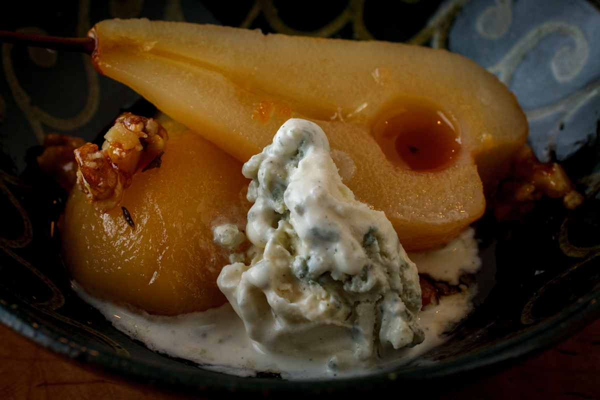 Poached Pears with Honey Walnuts and Roquefort Ice Cream-1823