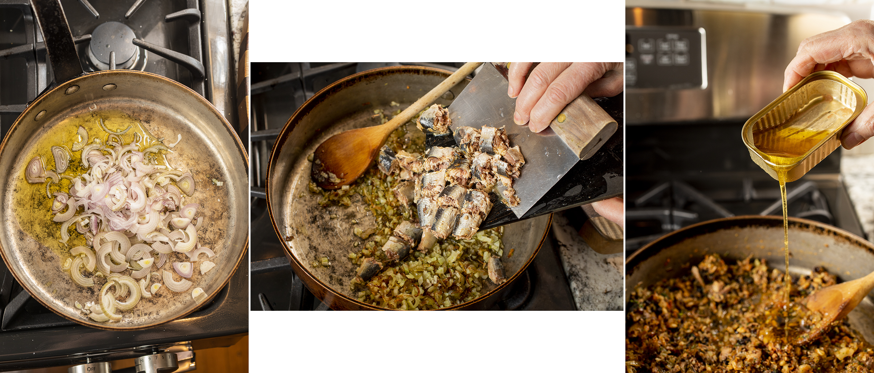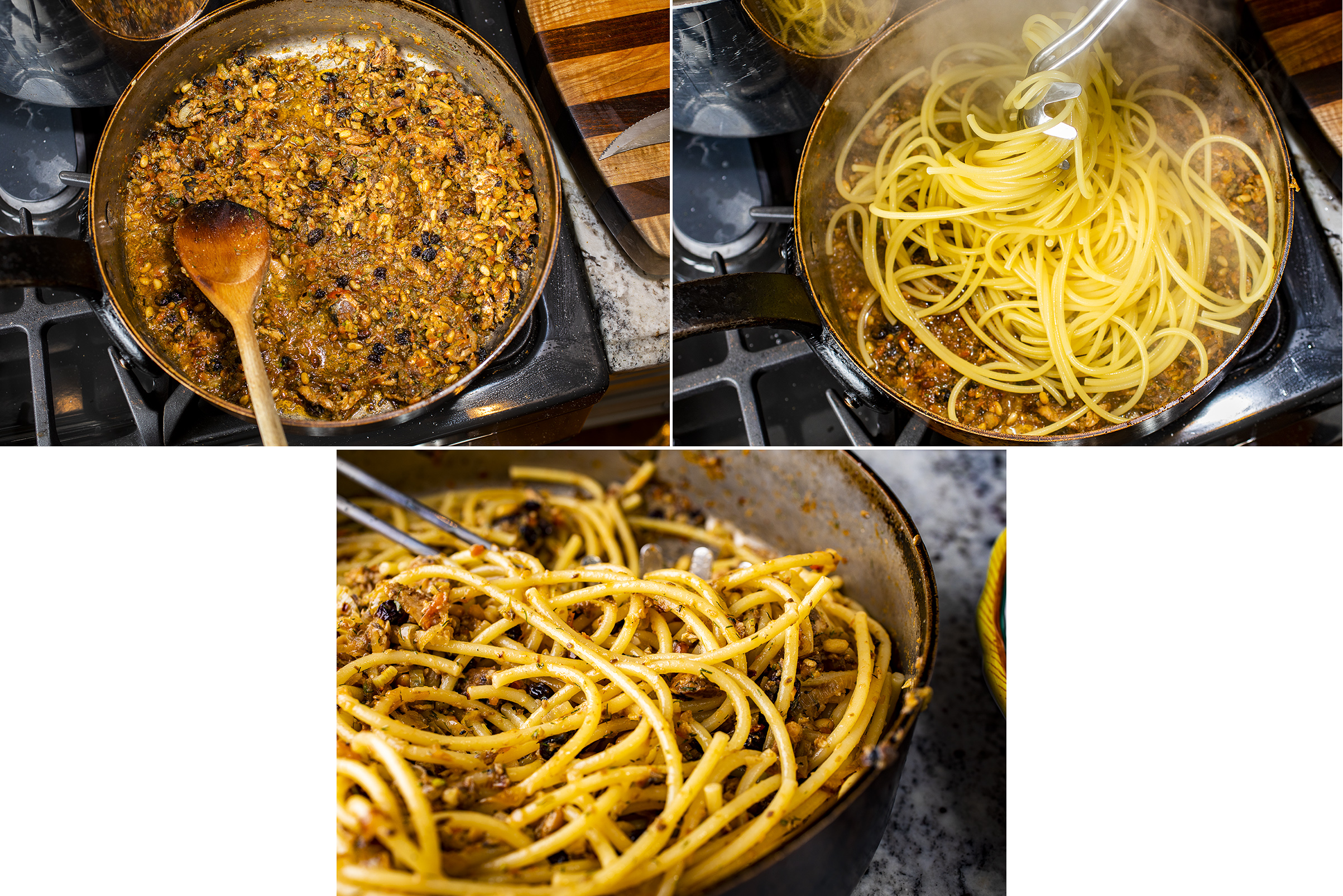5. Add the chopped sardines and currants and cook 2 minutes.
