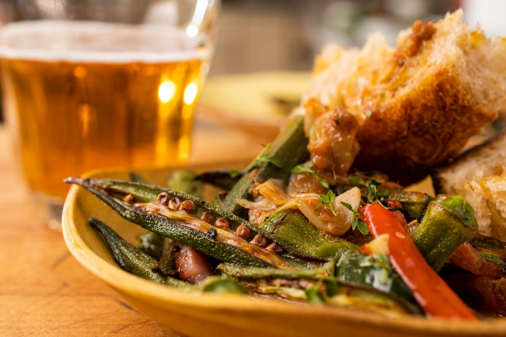 - Roasted okra’s good enough to stand on its own with a thick slice of sourdough bread and a glass of beer or wine for a weekend lunch (my choice).