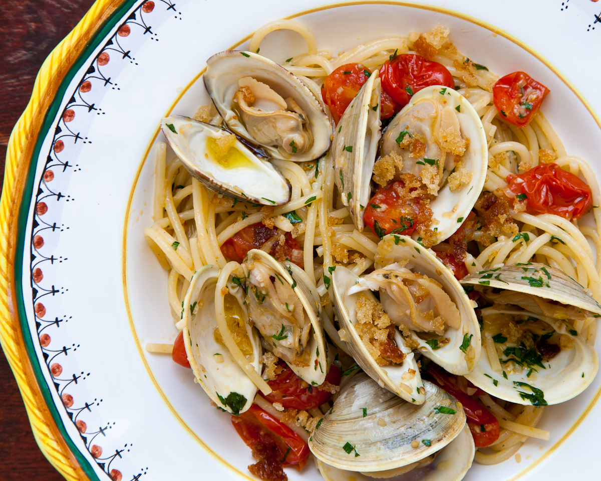 Every pasta shape is lovable, if only it finds the right sauce. But deep down inside, we know whom we love best. For me it’s bucatini. Bucatini is what spaghetti would be if it had a gym membership, and the will to pump iron until it got the girl. I’d slurp up a bowl of bucatini slicked with WD40 just to experiences its chewy satisfactions. While bucatini is no match for sauces that require crampons and carabiners to hold them in place, ending up with leftover sauce in the bottom of the bowl hardly seems like the end of the world. (Pass the bread, please.) No fear of that this week. New England tomatoes are gasping their last, with only a few red diehards and lots of green wannnabees still about. Together they make a great sauce that tastes of the season. Bucatini with Red and Green Tomatoes is the pasta to eat at the gate of fall. Blink, and even the green tomatoes will be gone.